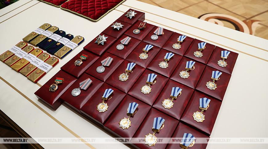Награды и новые погоны, которые в торжественной обстановке получили участники церемонии, являются, по словам Президента, признанием больших личных заслуг перед Отечеством, подтверждением уровня профессиональной выучки и знаком высокого доверия белорусского народа.