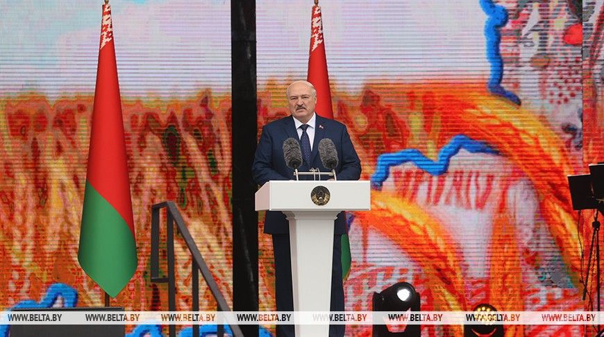 Президент принял участие в торжественной церемонии чествования аграриев на фестивале-ярмарке «Дажынкі-2024» в городском поселке Корма.