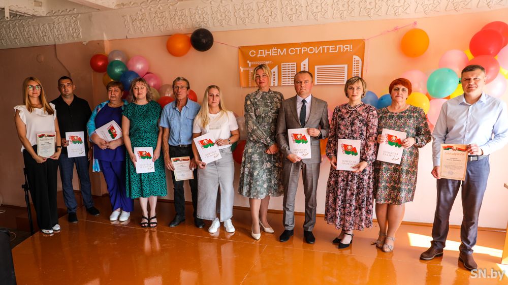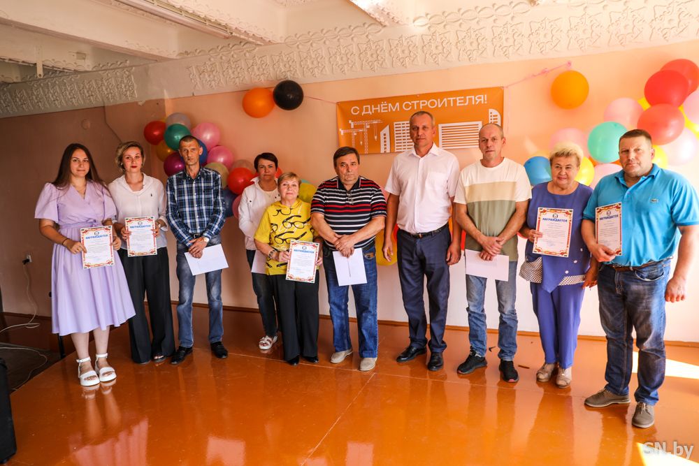 Торжества, посвященные Дню строителя, начались в ОАО «Светлогорский домостроительный комбинат» с чествования лучших работников предприятия в актовом зале управления. Здесь собрались ветераны производства, инженеры, проектировщики, монтажники, формовщики, штукатуры, водители, слесари-ремонтники, электросварщики, станочники деревообрабатывающих станков, плотники, контролеры строительных материалов, машинисты подъемных кранов – работники и управленцы всех структурных подразделений ДСК, обеспечивающих устойчивую работу предприятия. От имени главы района – Дмитрия Шабетника – с Днем строителя их поздравила заместитель председателя Светлогорского райисполкома Татьяна Белая: