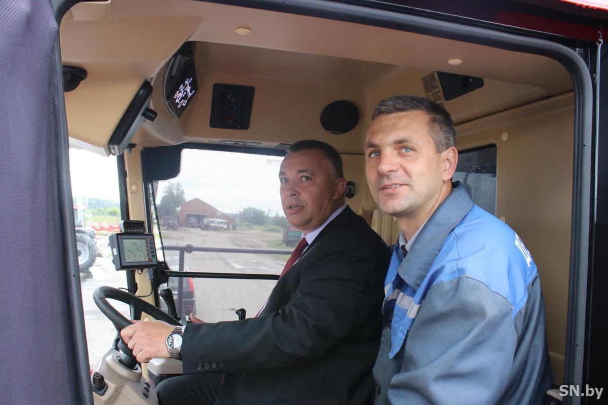 Игорь Тавтын не смог обойти вниманием новый комбайн и попросил хозяина показать ему зерноуборочную машину. Николай Бенько, который опробовал многие комбайны зерноуборочной техники «Полесье», с охотой рассказал о преимуществах нового агрегата перед предшественниками: