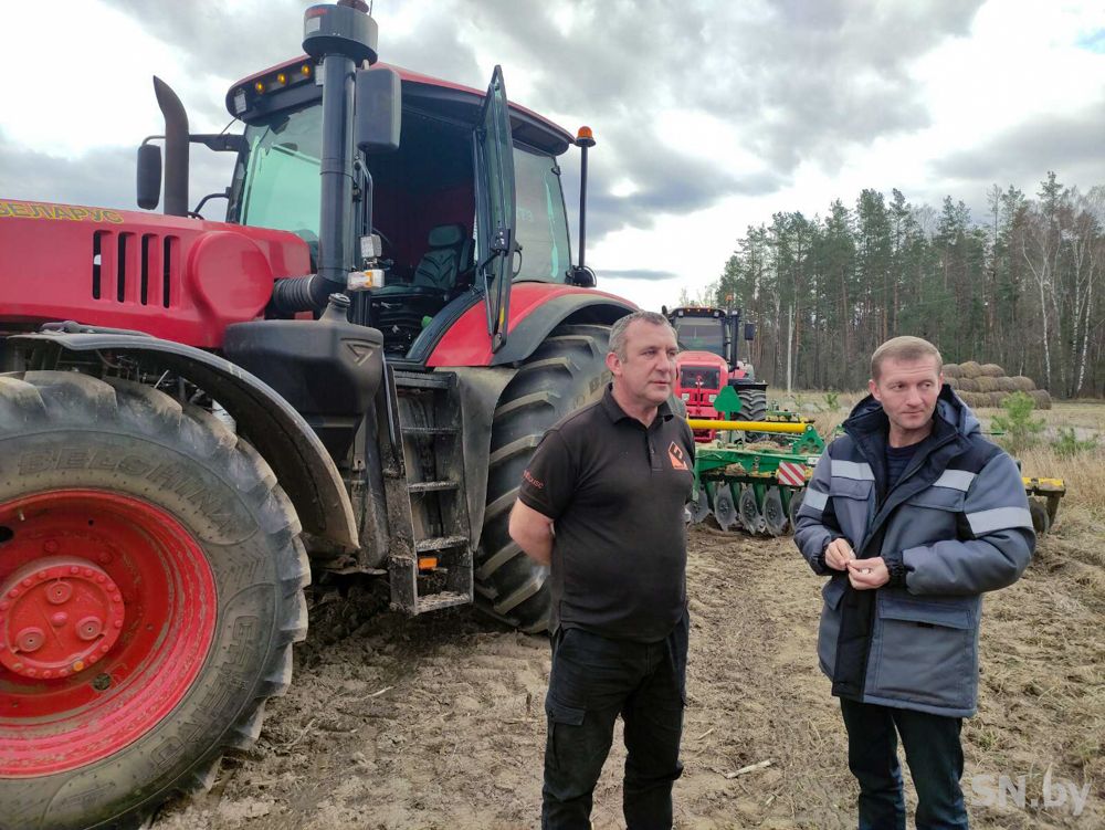 Межрайонный механизированный отряд в действии. Механизаторы Николай Шульга и Иван Филипчик готовят почву под сев бобовых культур. Это один из участков сельхозугодий, которые переданы ОАО «Светлогорский агросервис».