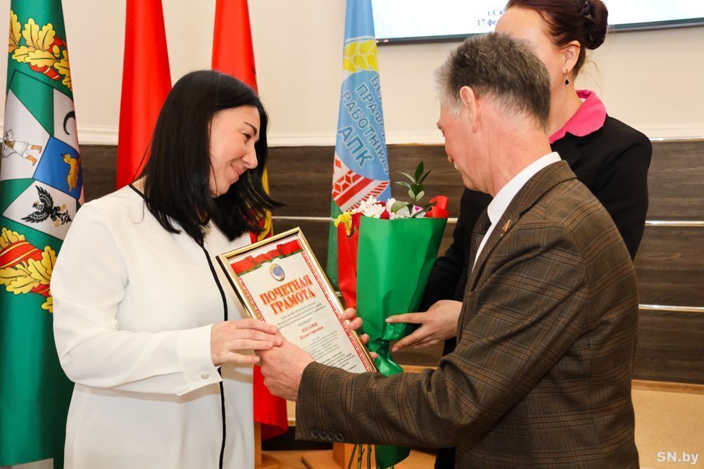 В последующем председатель областной профсоюзной организации работников АПК Александр Гриньков вручил Почетные грамоты активным участникам профсоюзного движения Светлогорского района.