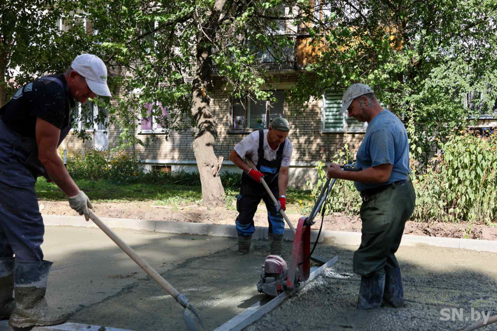 Работа близится к завершению, после чего коммунальники приступят к укладке тротуара из брусчатки.