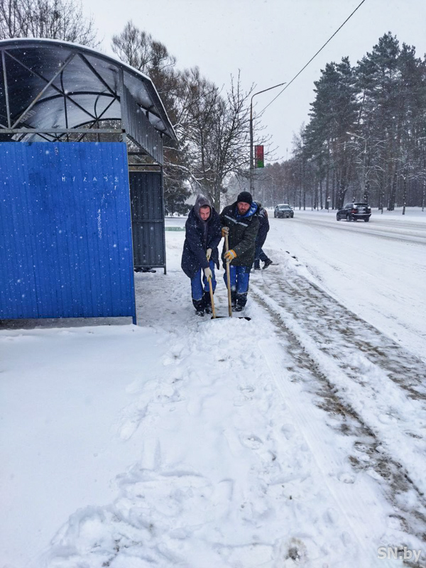 Работники КЖУП "Светочь" круглосуточно ведут борьбу со снегом.