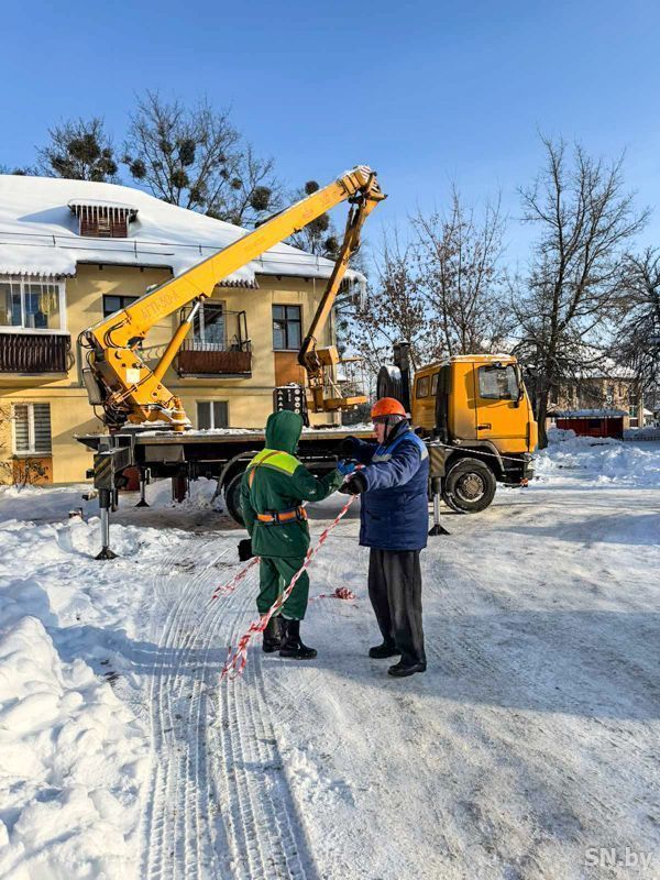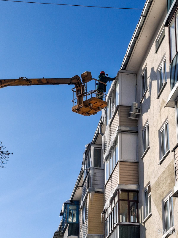Параллельно с расчисткой улично-дорожной сети от снега проходит очистка от наледи и сосулек кровель домов. По словам заместителя генерального директора КЖУП «Светочь» Ольги Бакуновой, в настоящее время очищено 27% жилых домов. Работы выполняются поочередно с учетом имеющейся критичности. Кроме того, сегодня прошел мониторинг по проведению работ по расчистке наледи и снега на крышах многоквартирных жилых домов с соблюдением требований законодательства по эксплуатации жилищного фонда и правил по охране труда при уборке сосулек и наледи с мобильных подъемных рабочих платформ.