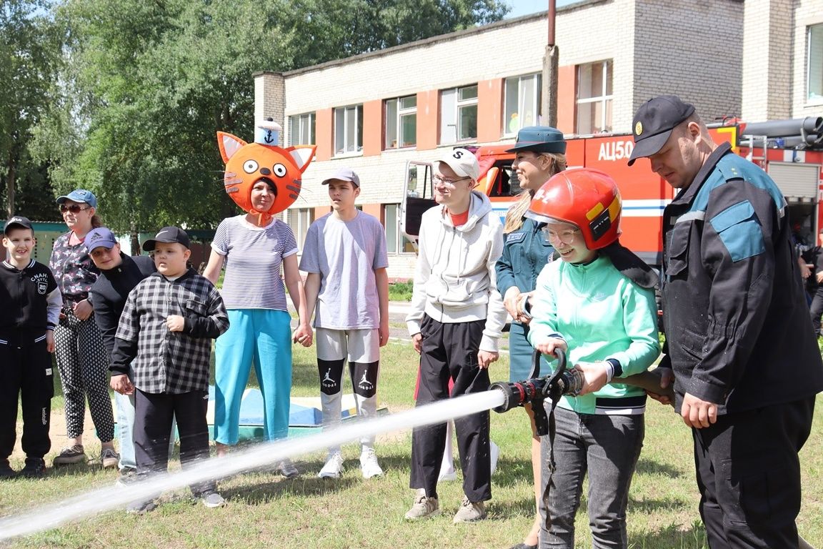 Полезной стала встреча со старшим инспектором сектора пропаганды и взаимодействия с общественностью Светлогорского РОЧС Натальей Кашиной, которая напомнила ребятам о правилах пожарной безопасности, об опасности открытых окон и том, как вести себя у воды. Настоящим сюрпризом для детей стала возможность изучить пожарную машину: ребята на некоторое время превратились в настоящих пожарных (тушили пожар из рукава, сидели в машине и задавали много вопросов спасателям).