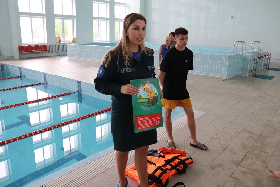 А в школьном лагере для учащихся средней школы №12 им.И.Котлярова теорию подкрепили еще и практикой. В бассейне детей ждал увлекательный опыт: представители спасательного ведомства объяснили ребятам основные приемы, как держаться на воде.