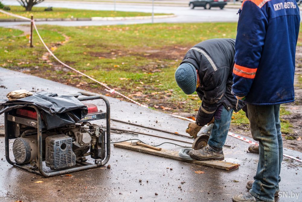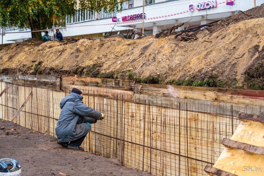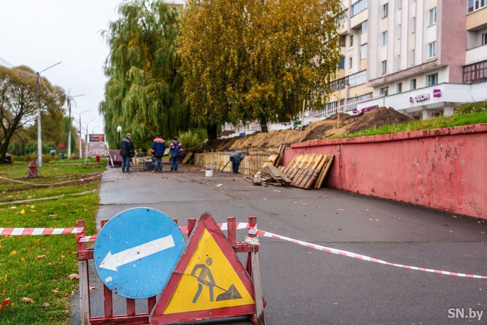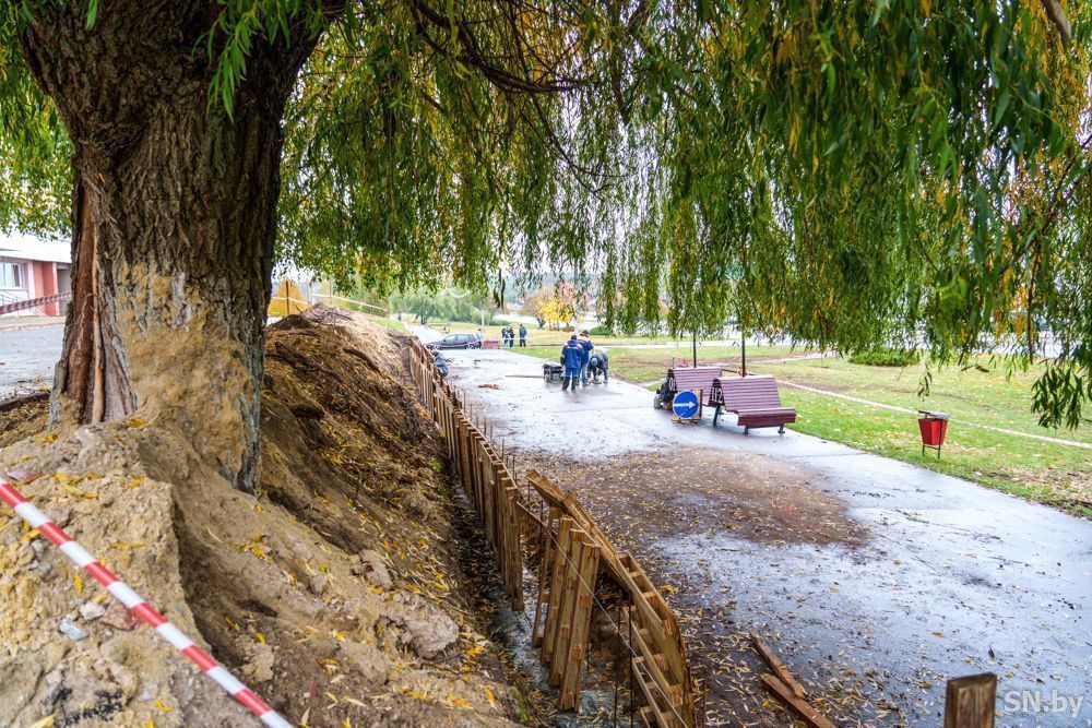 Работники КЖУП «Светочь» проводят текущий ремонт подпорной стены по ул.50 лет Октября. Этот объект находится в центре города, вдоль него проходят люди к Набережной и Аллее скамеек. Коммунальники снесли старую подпорную стену и проводят работы по армированию и устройству опалубки с последующей заливкой бетонного ограждения.