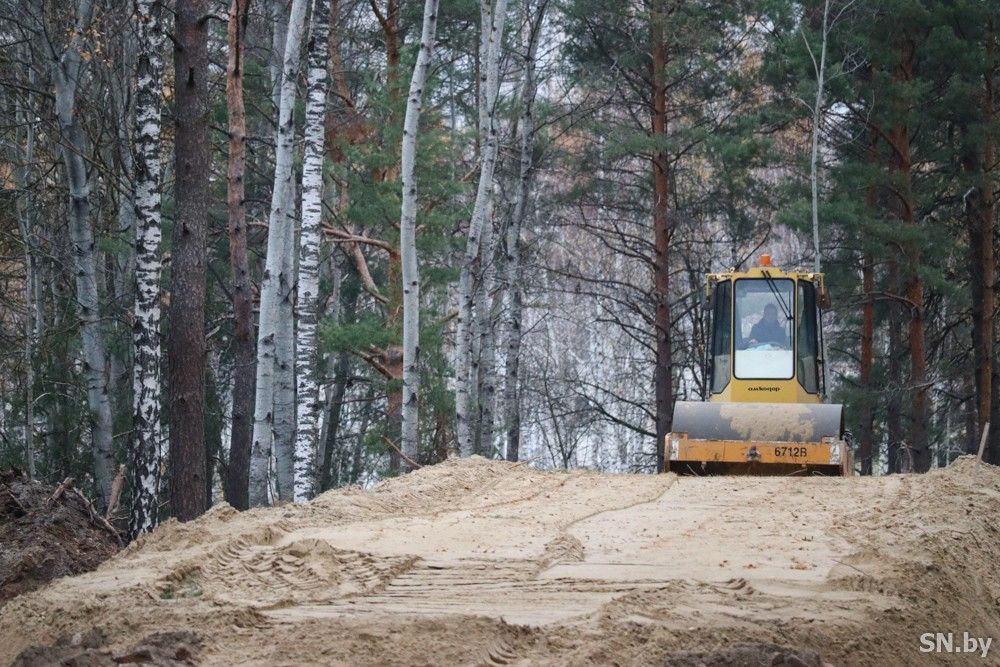 В интенсивном темпе продолжается строительство лыжероллерной трассы в Светлогорске. Постепенно она обретает законченную форму. Будущую лыжню выложили бордюрным камнем, попутно идет подготовка основания для последующей укладки асфальтового покрытия.