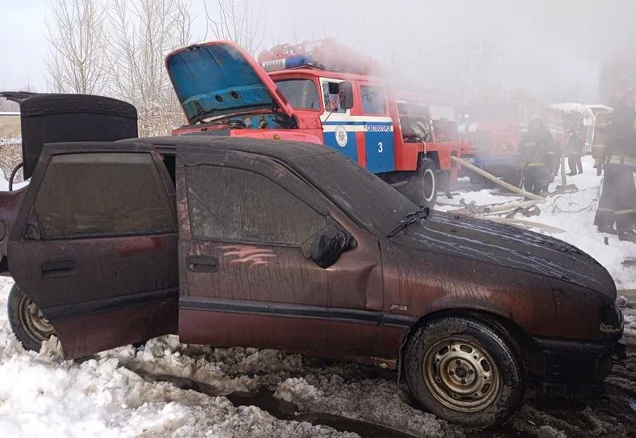 В результате пожара повреждено лакокрасочное покрытие автомобиля Opel Vectra, в кирпичном гараже повреждены вещи, закопчены стены. Пострадавших нет.