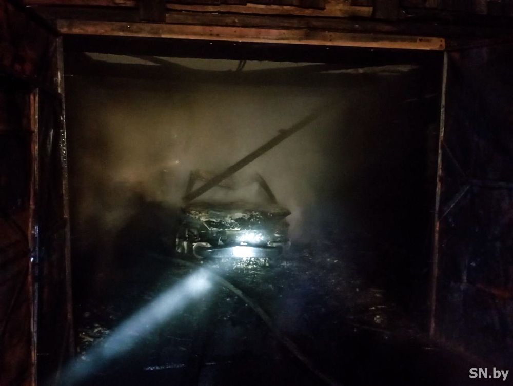 В деревне Узнаж сгорели гараж и легковой автомобиль. Предварительная причина – неосторожность при курении.