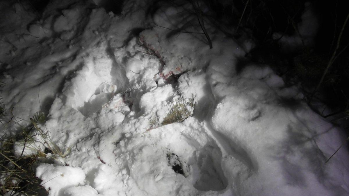 В ходе обследования территории, относящейся к охотничьим угодьям «Калинковичской РОС» РГОО «БООР», было обнаружено место сокрытия под снежным покровом останков разделанной туши дикого животного – одной взрослой особи самки лося. На место была вызвана следственно-оперативная группа Калинковичского РОВД.