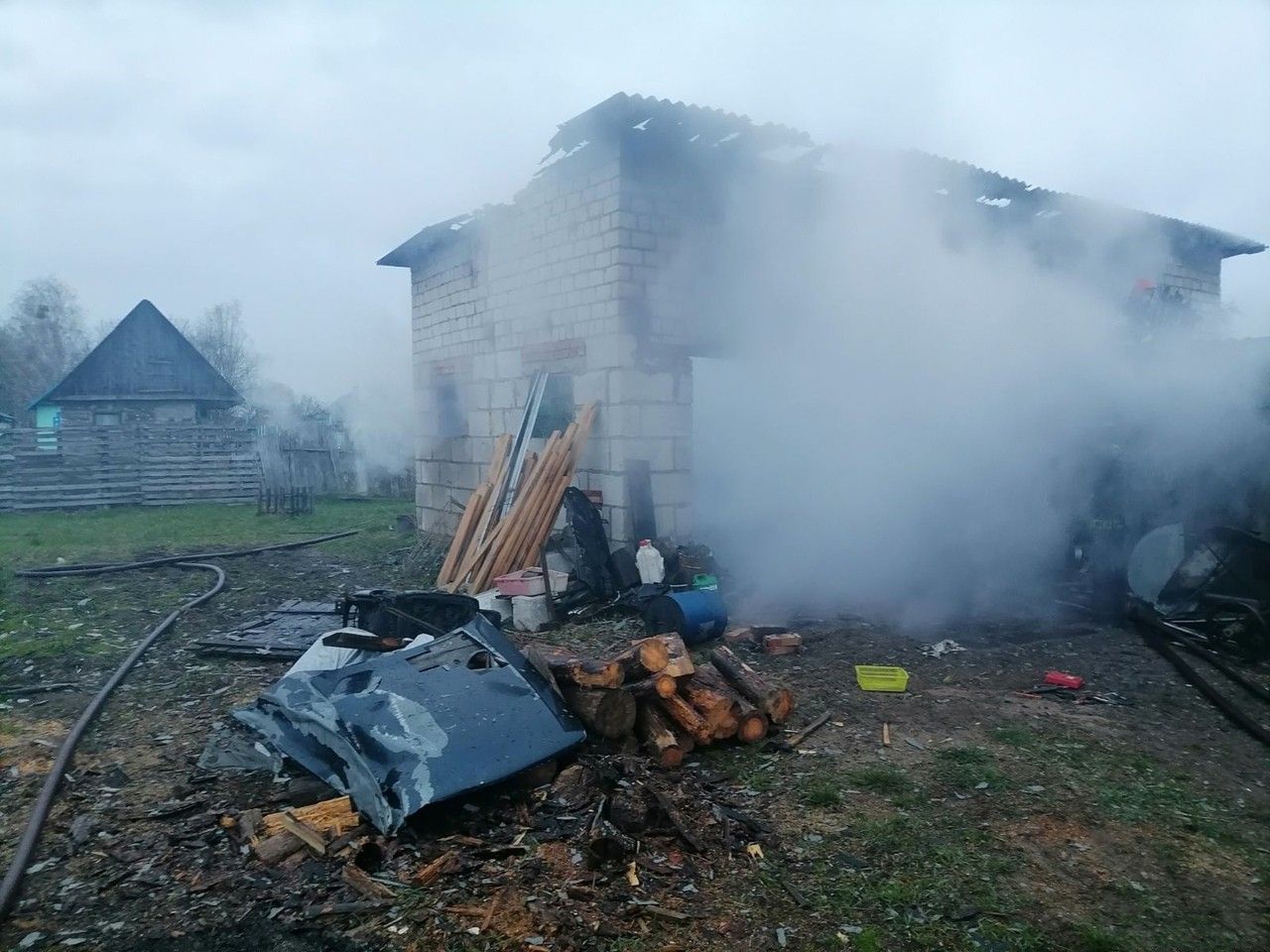 Вчера в гп.Паричи на ул.75-я Гвардейская произошел пожар: загорелась кирпичная хозяйственная постройка и автомобиль Fiat, который находился внутри. В результате пожара уничтожены легковой автомобиль и кровля хозяйственной постройки. Пострадавших нет. Причина пожара устанавливается, рассматриваемые версии – неосторожное обращение с огнем, нарушение противопожарных требований при проведении огневых работ.