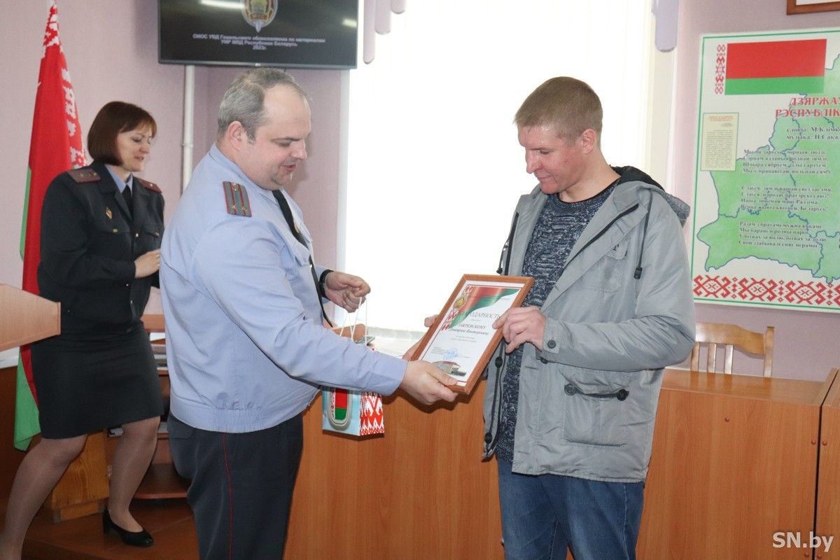 На минувшей неделе Дмитрий Закревский был приглашен в Светлогорский РОВД, где в присутствии личного состава первый заместитель начальника отдела внутренних дел Светлогорского райисполкома – начальник милиции общественной безопасности Алексей Серебро вручил ему благодарность и подарок, еще раз поблагодарив за высокую гражданскую позицию и помощь милиции в раскрытии резонансного преступления.