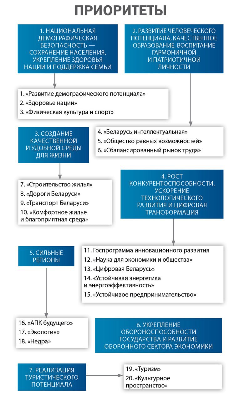 Семь приоритетов проекта Программы социально-экономического развития Республики Беларусь на 2026-2030 годы.