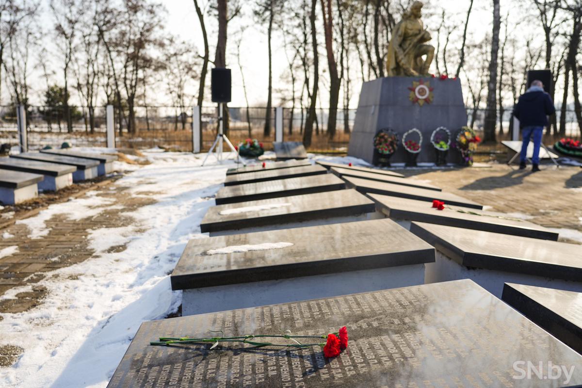 В братской могиле покоятся воины 48-й и 65-й армий, летчики 176-го истребительного полка, погибшие в боях и умершие от ран с ноября 1943 по июнь 1944 годов, а также саперы 219-го отдельного отряда разминирования, погибшие в октябре 1944 года у деревни Здудичи – всего 3306 человек. Из года в год списки погибших пополняются, на памятные плиты наносятся имена воинов, которые ранее числились неизвестными.
