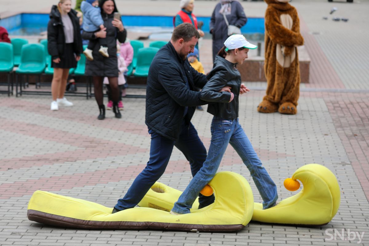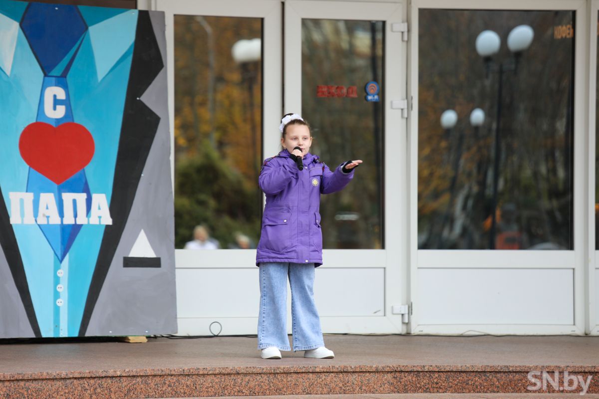 В конкурсной программе приняли участие самые смелые папы – Денис Коваленко, Андрей Высоцкий, Сергей Большаков, Алексей Капошкою. Они поражали цель каштанами, катались на многоместных лыжах, соревновались на скорость и ловкость на самокатах, показывали футбольную ловкость и силовое упражнение. В качестве награды каждый из отцов получил специальный приз. После награждений продолжилась концертная программа.