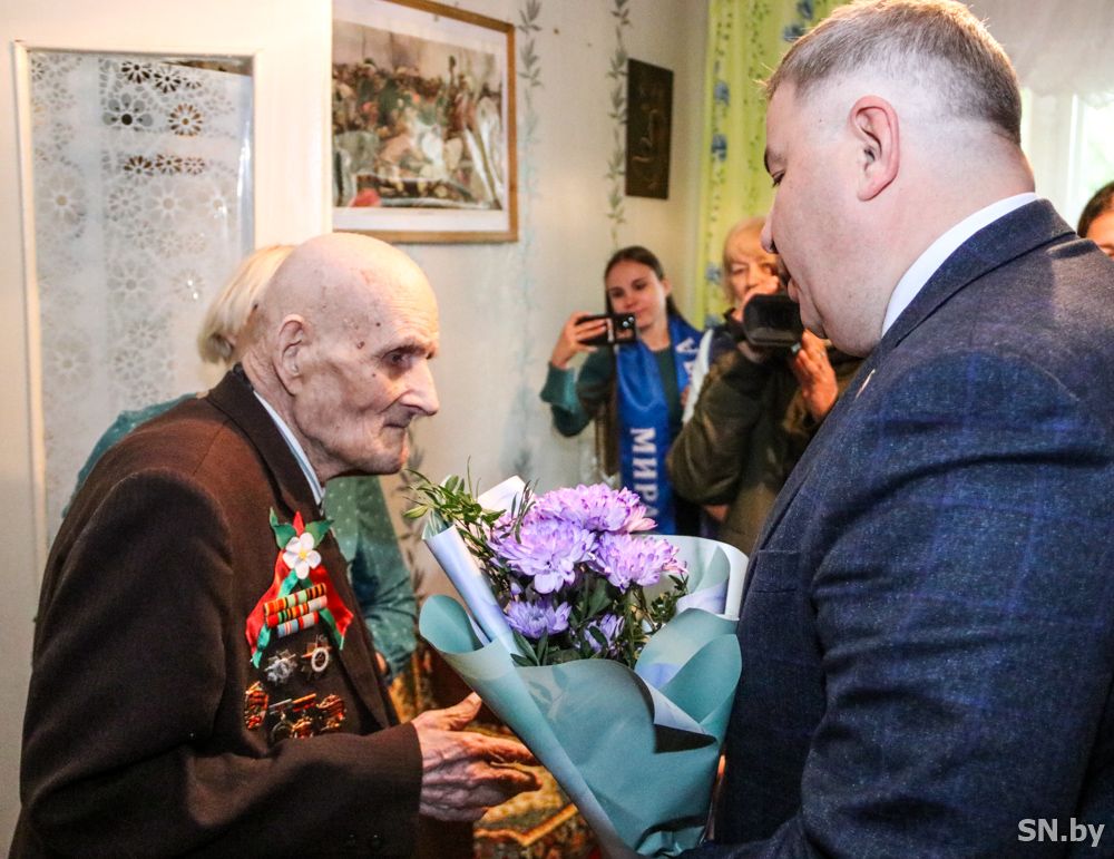 Борис Маскевич – один из немногих оставшихся в живых ветеранов, которые вступили в схватку с врагом с первых дней начала войны. Он до сих пор носит в руке осколок снаряда размером около трех сантиметров. Накануне 80-летия Великой Победы его приехали поздравить председатель райисполкома Дмитрий Шабетник, военный комиссар Светлогорского и Октябрьского районов полковник Андрей Рынейский, председатель районной организации ОО «Белорусский фонд мира» Елена Шишкова, директор СТЦСОН Елена Кацуба, школьники-миротворцы. В адрес ветерана прозвучали слова благодарности за мирное небо и пожелания крепкого здоровья. К многочисленным наградам Бориса Афанасьевича добавилась и медаль «80 лет Великой Победы».