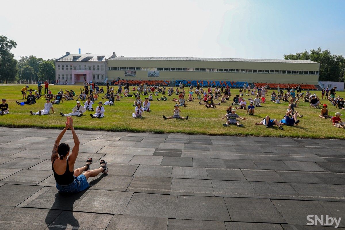 В рамках патриотического марафона, посвященного предстоящим II играм Союза Независимых Государств, на стадионе «Химик» в Светлогорске прошла «Народная зарядка» под девизом «Спорт, доступный каждому».