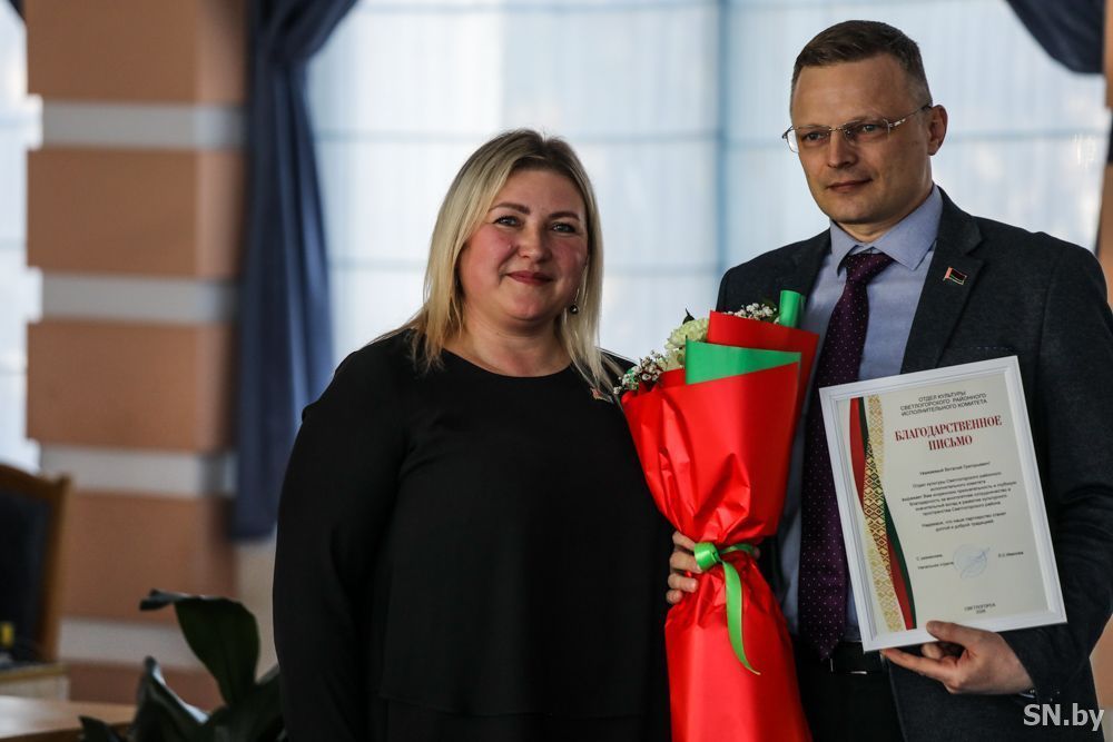 В работе итогового совещания приняла участие заместитель начальника Главного управления, начальник отдела культурно-просветительской работы Главного управления культуры Гомельского облисполкома Анастасия Лысенко. Она и Лина Иванова вручили Почетные грамоты лучшим работникам учреждений культуры по итогам работы за прошлый год, а также руководителям предприятий, которые не остаются равнодушными к проблемам культуры Светлогорского района.