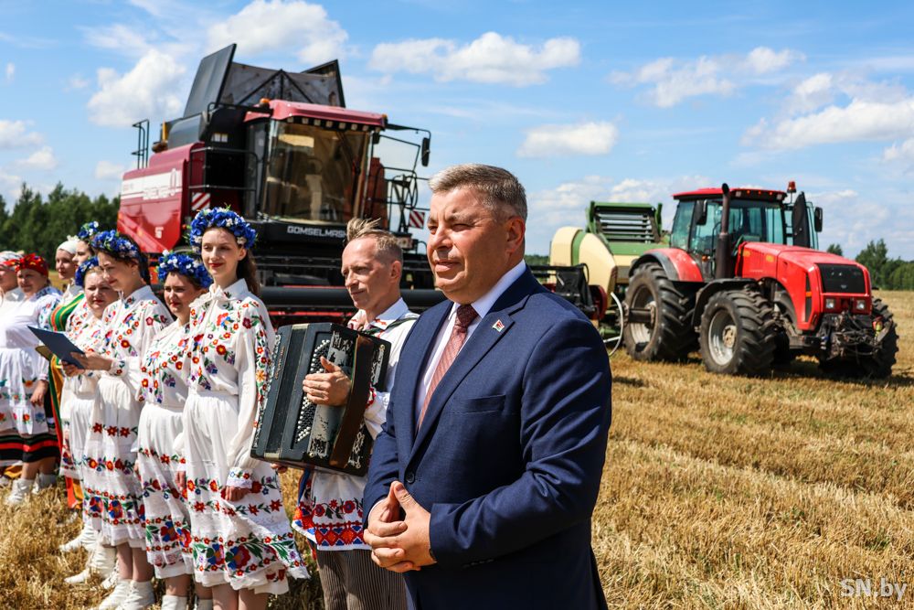 На обряд «Зажынкі» вместе с хлеборобами КСУП «Полесское» вышли председатель Светлогорского райисполкома Дмитрий Шабетник, его заместитель Андрей Петрович, председатель Светлогорского райкома профсоюза работников АПК Людмила Грибанова, руководители и специалисты сельхозпредприятий Светлогорщины. Обращаясь к работникам сельскохозяйственной отрасли, глава района отметил, что «день, с которого мы начинаем уборку урожая, имеет огромное значение как для района, так и для области, и для страны»: