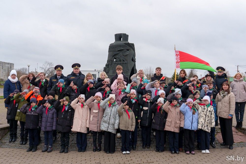 В преддверии Дня Октябрьской революции учащиеся средней школы №3 г. Светлогорска торжественно приняты в ряды пионеров. Мероприятие проходило на знаковом для горожан месте — у мемориала «Скорбящий колокол».