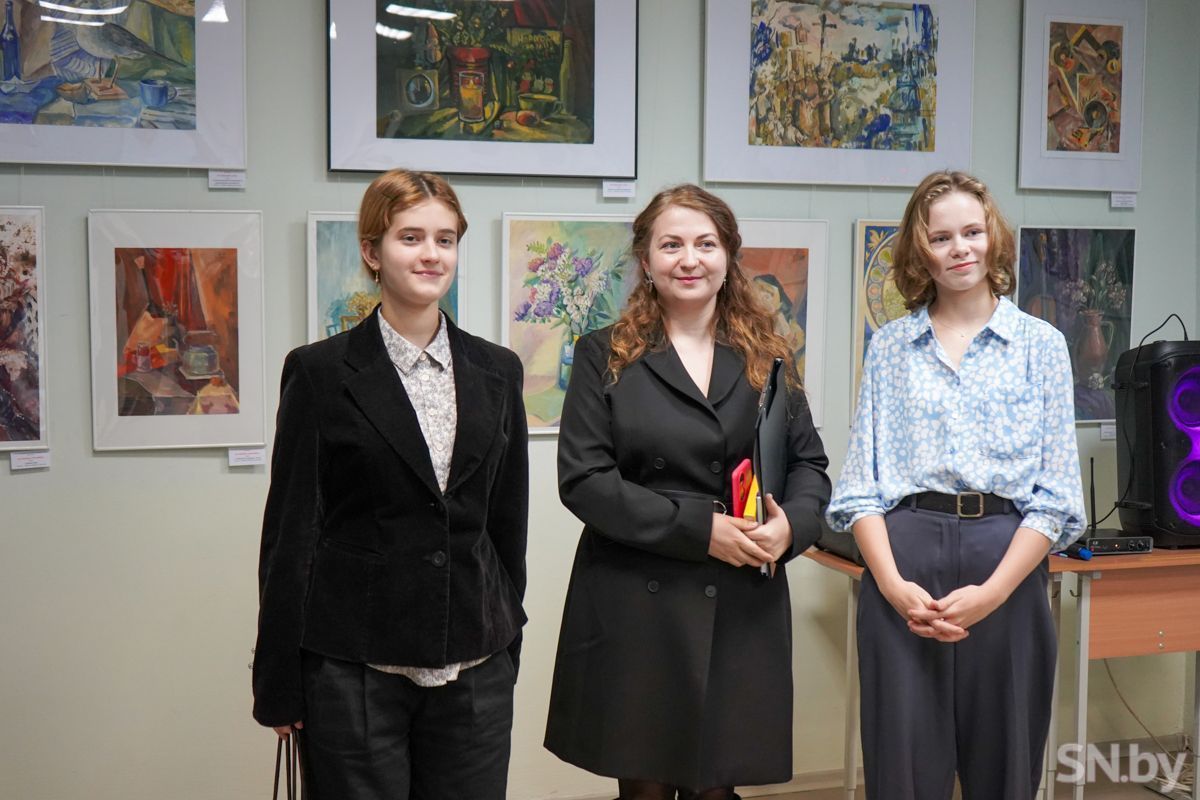 Педагог Марина Дайнеко стала инициатором выставки своих учениц – именно она предложила собрать 4 десятка лучших работ и пояснила, что с таким «запасом» дипломов различного уровня (в том числе и международного), творчества и креатива девушек это было сделать необходимо. И, действительно, рассматривая картины, очевидно, что девушки – очень разные по характеру, по восприятию мира, но обе нашли свой стиль, который надо дальше развивать и шлифовать. И Марина Сергеевна уверена в том, что все у них получится, благодаря трудолюбию и целеустремленности.