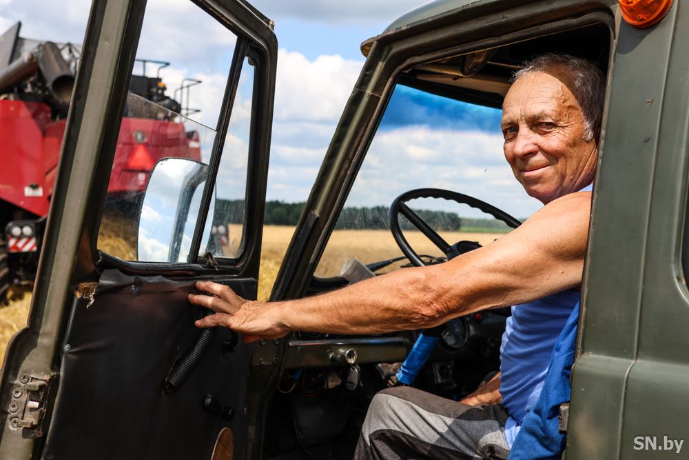 Урочище «За Игнатом» – это 50 га поля. Весной здесь посеяли яровой ячмень. Все было просчитано таким образом, чтобы сами посевы не дали места появиться сорнякам. Своевременные манипуляции с химобработкой и подкормкой – и достойный результат: стебель к стеблю, колос к колосу радуют темно-желтыми оттенками зрелости, и ни одного сорняка на горизонте. «Видите, колосья опустили «головы». Это верный признак, что ячмень готов к уборке. Пора приступать» – эти выводы сделал именитый земледелец района, Почетный гражданин Светлогорского района, в прошлом руководитель хозяйства, а теперь помощник директора СУП «Михайловское-агро» Владимир Леонтьевич Черенок. Он по-прежнему в строю и не упускает возможности, чтобы лично понаблюдать за ходом уборочной.