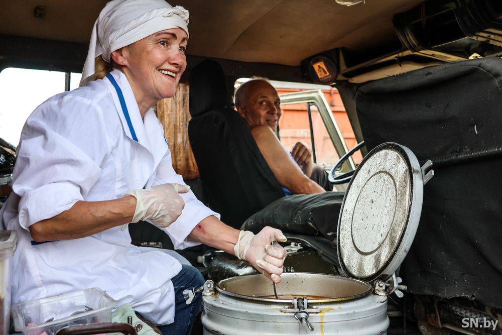 Ближе к полудню, в назначенный час на окраине поля остановился УАЗик. Завершая круг уборки зерна, комбайны останавливались, и их экипажи отправлялись к машине, где их ожидала повар Наталья Жук. Настало время обеда.