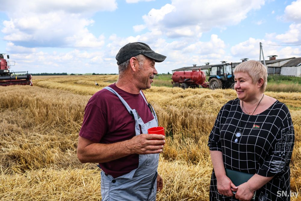 Депутат Палаты представителей Национального собрания Республики Беларусь Елена Лаптева не могла остаться в стороне от такого события, как уборочная кампания: «Сегодня от терпения, упорства, профессионализма хлеборобов зависит продовольственная безопасность страны. Искренне интересно, с каким настроением работают хлеборобы в поле и какой результат прогнозируют они на урожай в этом году».