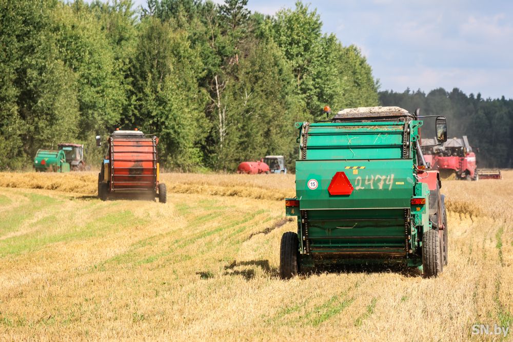 Комбайны с марша сразу вошли в ячменную ниву. Соблюдая безопасное расстояние, они друг за другом пошли в круг по краю поля. Нынешние погодные условия, когда один день сухо, а на следующий могут нагрянуть проливные дожди, диктует тактику уборки. В поле вышло три комбайна, за ними неотрывно следуют два трактора с пресс-подборщиками, которые оперативно прессуют солому в рулоны, тем самым сохраняя ее от воздействия влаги и готовя к транспортировке в склад.