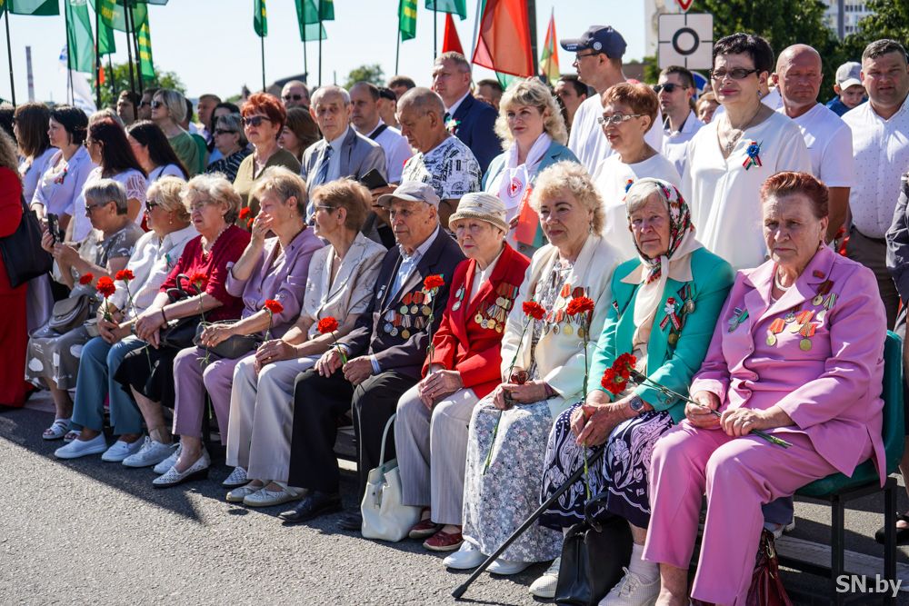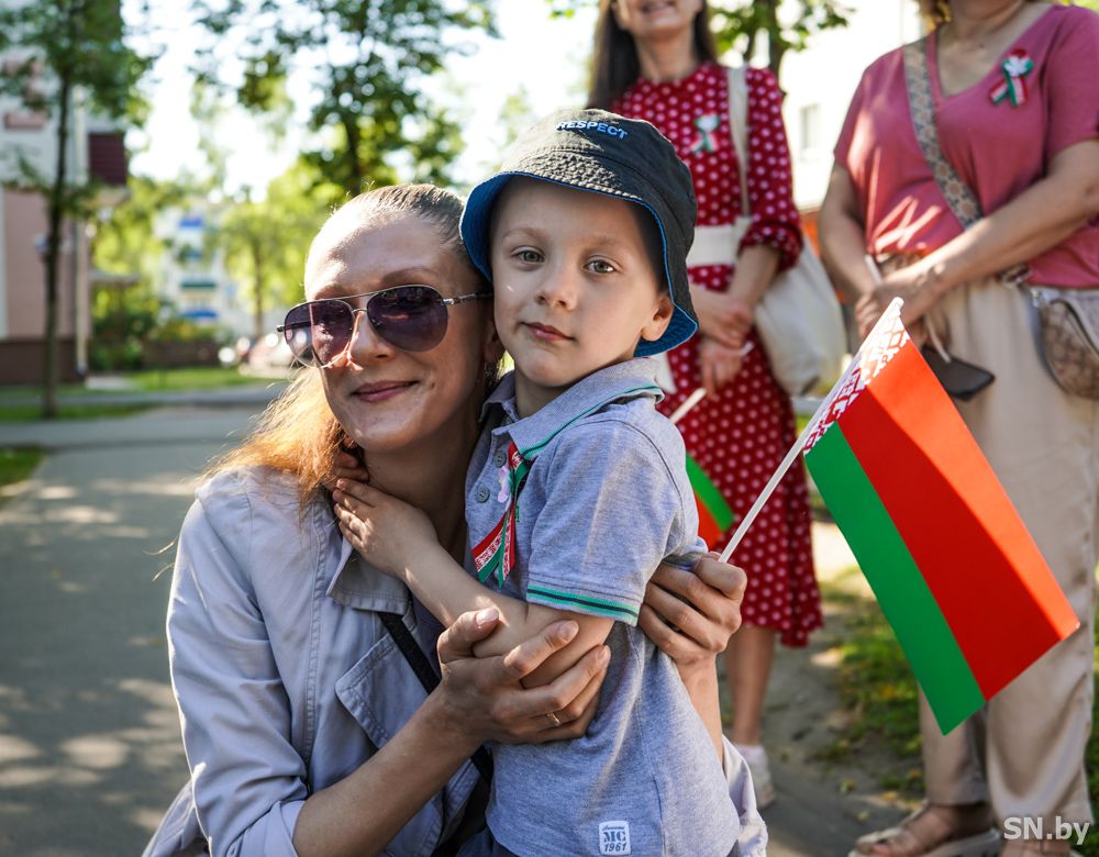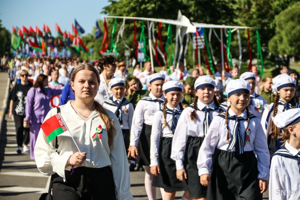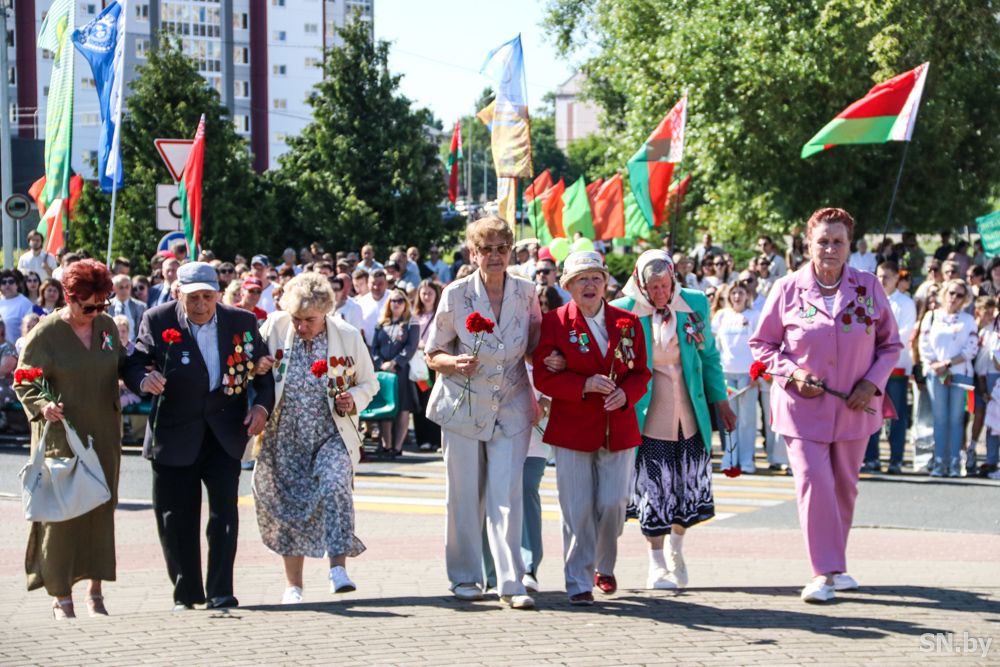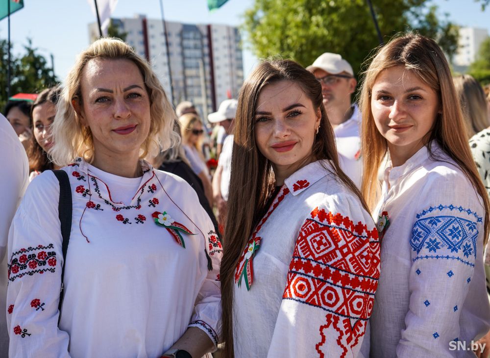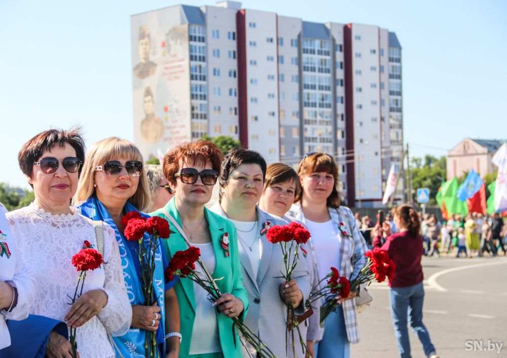 Мероприятия главного праздника страны в Светлогорске начались с традиционного праздничного шествия администрации Светлогорского района и почетных граждан, трудовых коллективов и общественных организаций. По центральной улице к монументу «Скорбящий колокол» прошагала и молодежь: особенную колонну видно издалека – светлогорцы приняли участие в районной акции «Пад сцягам з вышыванкай».