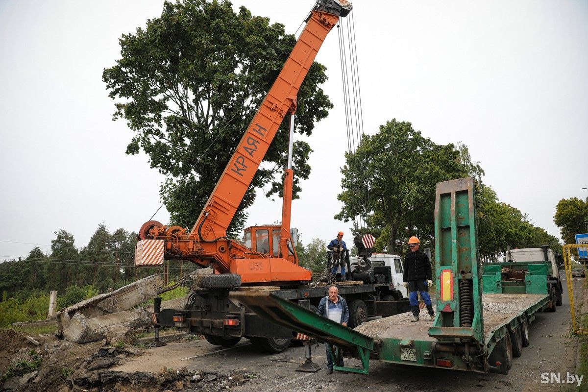 Продолжается реконструкция путепровода по улице Свердлова в районе станции техобслуживания. На сегодняшний день снято асфальтобетонное покрытие и уже демонтирована часть конструкций путепровода. По словам начальника Ремонтно-строительного управления «Светлогорскремстрой» КЖУП «Светочь» Сергея Леонова, работы проводятся согласно графику. Сегодня с помощью специальной техники производится погрузка демонтированных ребер жесткости путепровода для очистки строительной площадки. Одновременно производится подвоз грунта для последующей укладки и трамбовки будущего конуса вместо демонтированного путепровода.