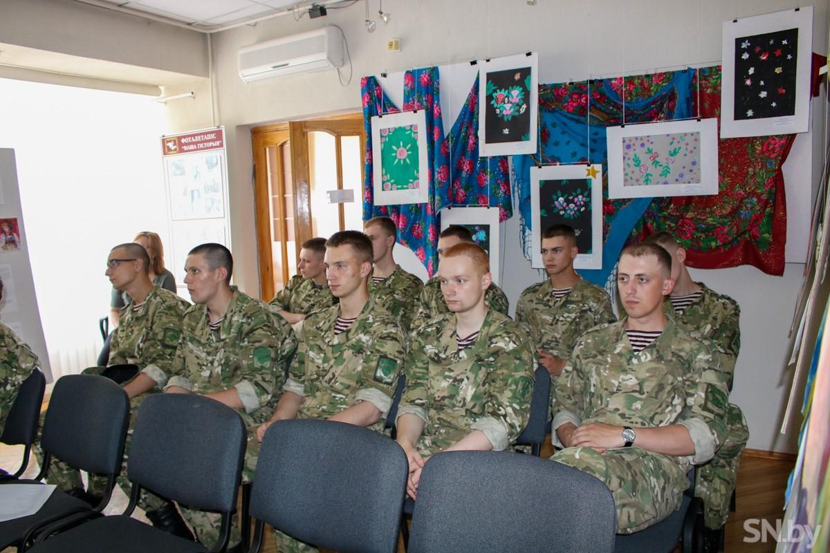 В картинной галерее «Традиция» встреча прошла в день печальной даты – 22 июня, посвященная Дню всенародной памяти жертв Великой Отечественной войны и геноциду белорусского народа. Среди участников – представители клуба ветеранов педагогического труда «Собеседник» Инесса Макарецкая, Валентина Ковальчук, бывший председатель профкома ОАО «Светлогорский завод ЖБИиК» Евгений Казаков, а также военнослужащие войсковой части 5525.