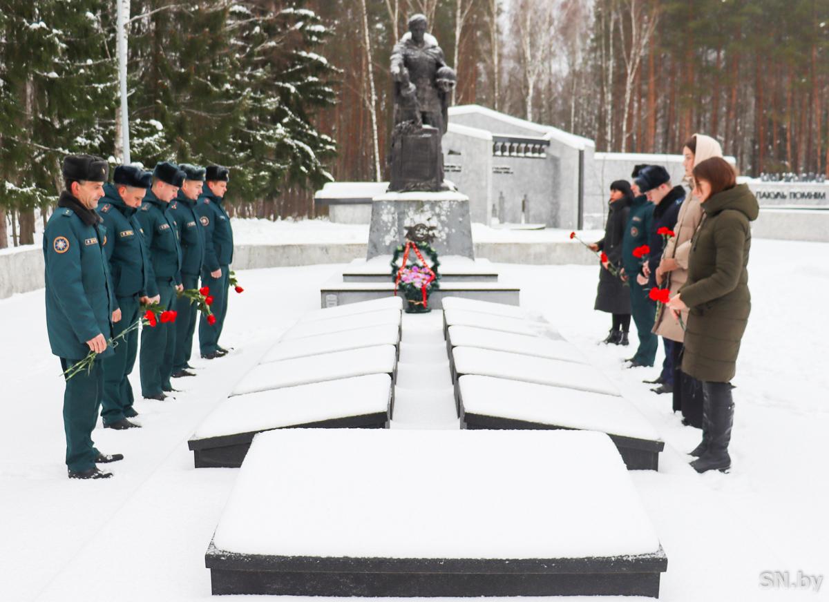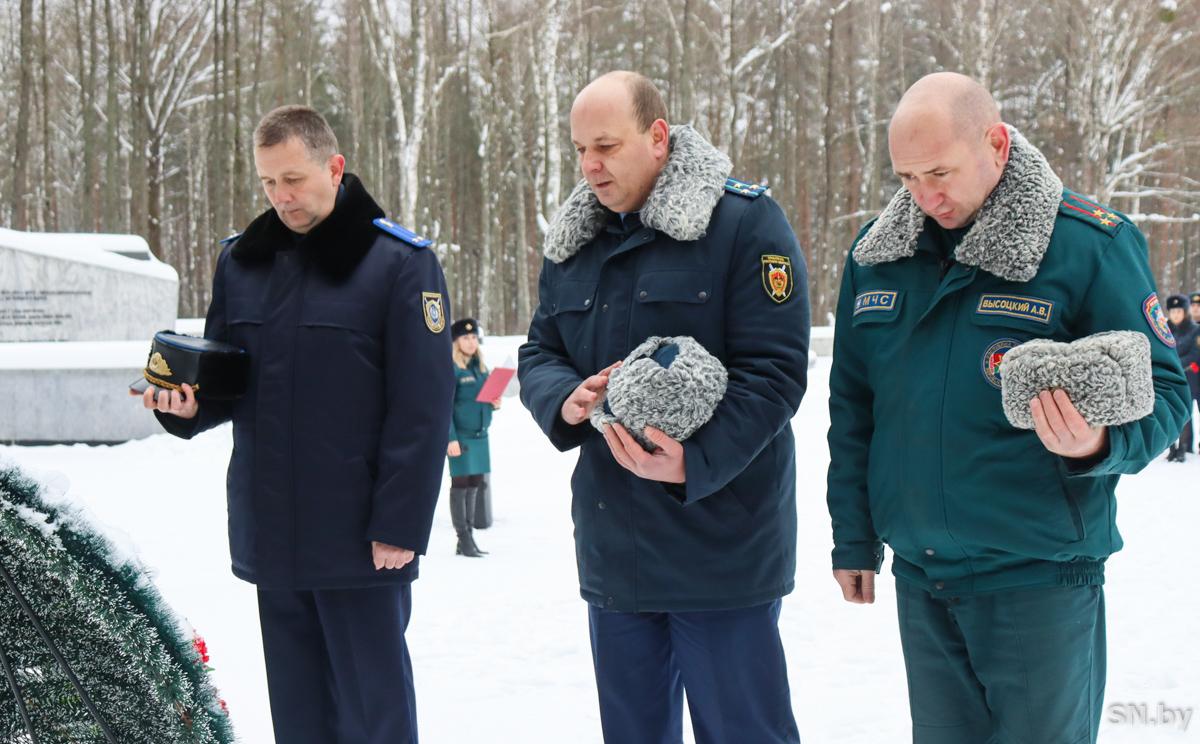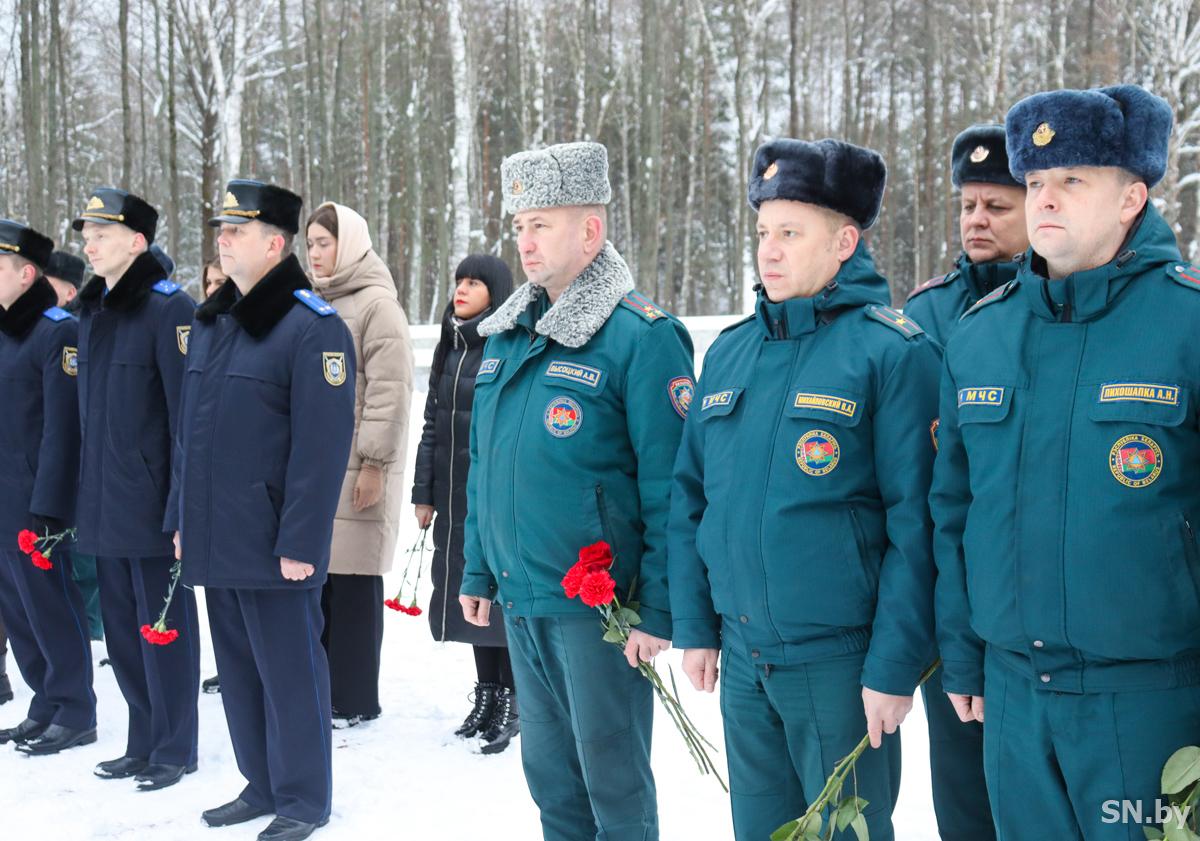 У обелиска погибшим на мемориальном комплексе «Ола» состоялся траурный митинг. Чтобы почтить память павших, собрались работники Светлогорского и Октябрьского РОЧС, Светлогорского участка ГИМС, прокуратуры Светлогорского района, Светлогорского районного отдела Следственного комитета Республики Беларусь, члены Белорусского союза офицеров.