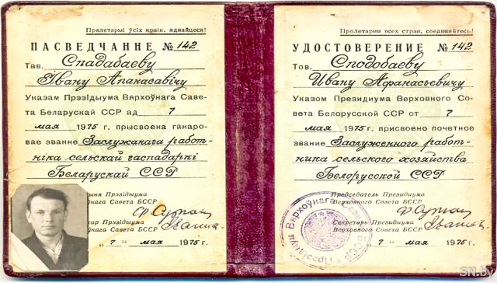Большинство домов в родной деревне были сожжены, и семья Сподобаевых из д.Волковка переехала в д.Ходосы — 2. Здесь Иван Афанасьевич женился, построил дом, родилось четверо детей (три дочери и сын Владимир). Мужчина достиг всего, о чем мечтал на фронте. А главное – занимался любимым делом: пахал землю, растил хлеб. И делал это очень хорошо. В 1975 году ему было присвоено почетное звание «Заслуженный работник сельского хозяйства БССР» (Указ Президиума Верховного Совета БССР от 7 мая 1975 г.). Иван Афанасьевич также награжден медалями «За отвагу», «За оборону Ленинграда», «За Победу над Германией в Великой Отечественной войне 1941-1945гг.», Орденом Отечественной войны I степени и другими юбилейными медалями. Он всегда любил свою страну, гордился ею.
