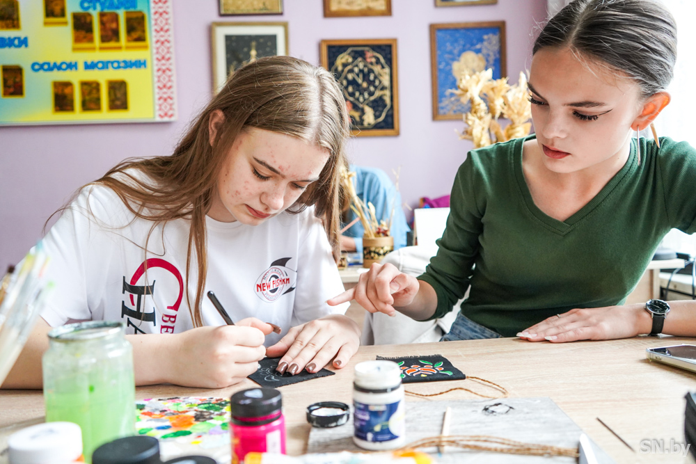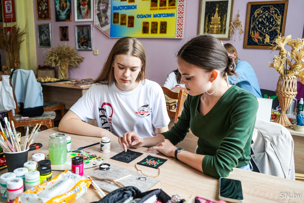Конечно, «фишки» хотели попробовать себя в творчестве и выбрали роспись по ткани и аппликацию соломкой. Илона Кудряшова, по ее признанию, в последний раз рисовала красками в начальной школе, но выбрала роспись по ткани с Алиной Музыченко: «Из нескольких вариантов я итоге остановилась на этом. Прекрасная и очень добрая Алина сразу же создала атмосферу тепла и уюта, что помогло мне расслабиться и сосредоточиться на творчестве. Она делилась своими знаниями и показывала различные техники рисования, вдохновляя меня на создание уникального изделия. Я была поражена тем, как быстро время пролетело в процессе работы. Каждая минута приносило мне радость и удовлетворение, а поддержка Алины позволила раскрыть свои творческие способности.