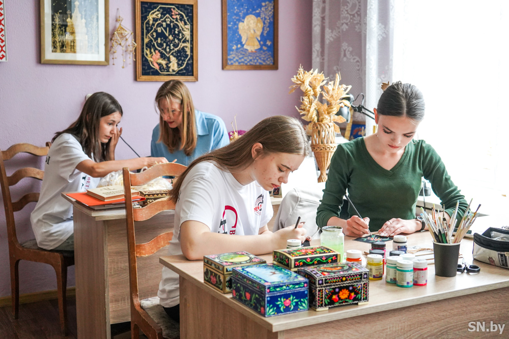 Направляемся в студию-мастерскую. По словам директора учреждения Натальи Ворониной, Евгения Близнец, Марина Рубанова, Алина Музыченко, Светлана Миренкова создают здесь свои произведения в соломоплетении и аппликации соломкой, вышивке, росписи по дереву и стеклу, художественной обработка кожи. И у каждой их них – свой неповторимый стиль и огромное количество дипломов и наград (как индивидуальных, так и коллективных). А их работы – свидетельство творческого потенциала, потому что в них – удивительная энергия, образность и гармония. Причем, охотно делятся своим творчеством и со взрослыми, и детьми на мастер-классах, а также в кружках и любительских объединениях, работающих на базе Дома ремесел.