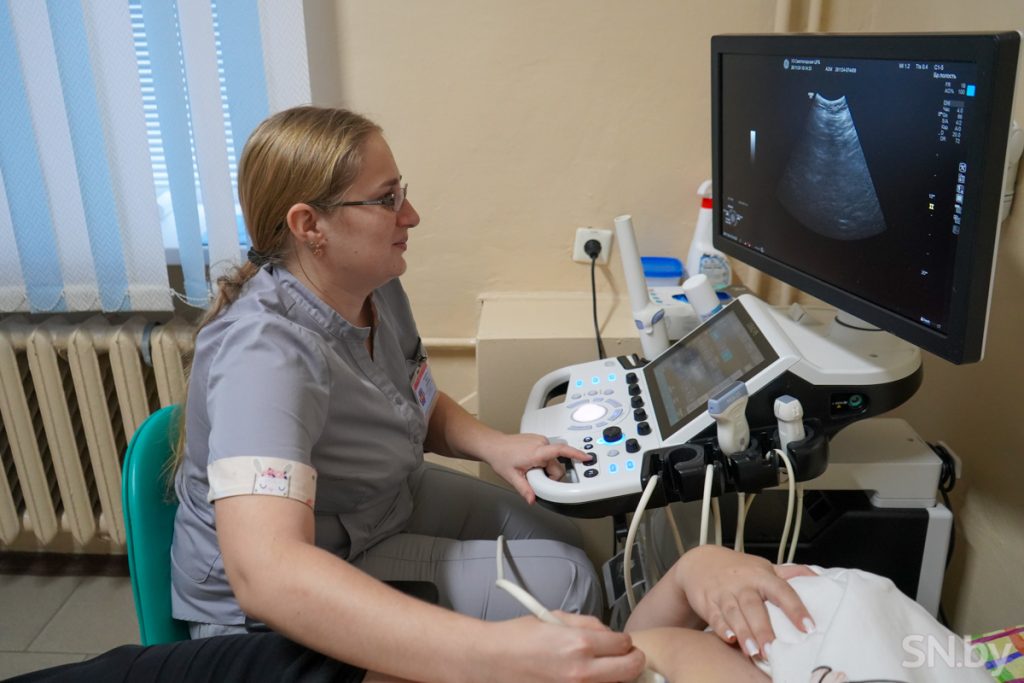 Работает она на аппарате экспертного класса, который получили в 2022 году: «Мы его ждали, у него прекрасная визуализация, 4 датчика, это высокоточное оборудование дает большие возможности для процедуры УЗИ», — поясняет специалист.