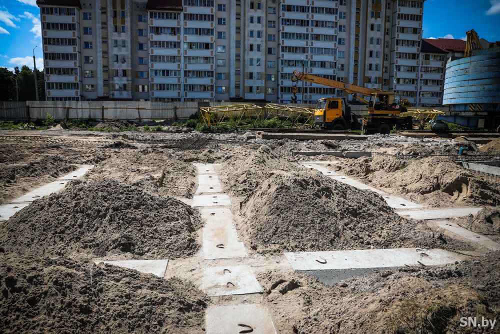 В микрорайоне Полесье начато строительство двухподъездного десятиэтажного дома на 80 квартир. На данный момент выполнена разработка котлована и укладка фундаментных блоков. Начался подготовительный этап устройства монолитного пояса, а также монтаж башенного крана. Обо всем рассказал мастер общестроительных работ ОАО «Светлогорский ДСК» Александр Дудко.