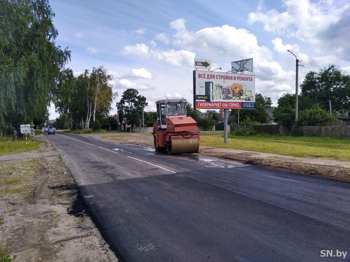 Как рассказал директор филиала Светлогорское ДРСУ-207 КПРСУП «Гомельоблдорстрой» Виталий Филиппович, участок дороги, который будет отремонтирован, составляет тысячу метров – около 8 тысяч квадратных метров. Асфальтоукладчик укладывает асфальтобетонное покрытие слоем в пять сантиметров. Асфальтобетон производится на местном асфальтном заводе. Битум для асфальтобетона поставляется с Мозырского НПЗ, остальные составляющие доставляются со щебеночного завода «Глушкевичи».