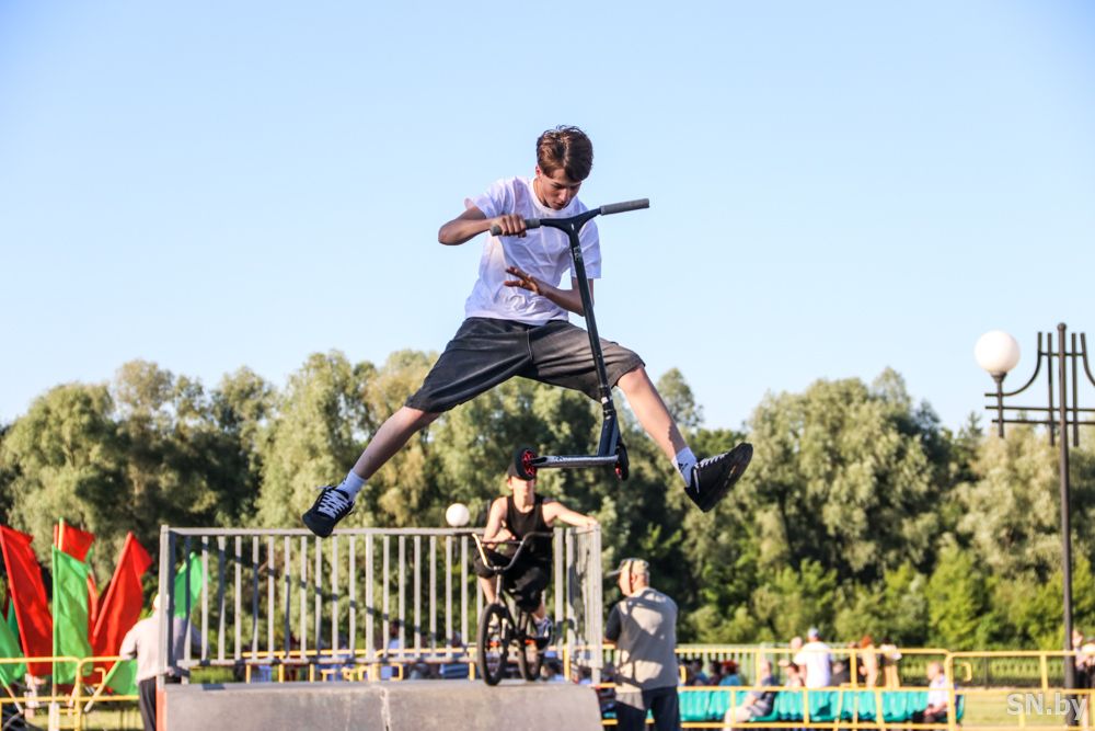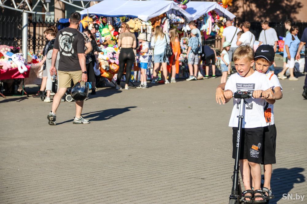 Свою независимость белорусы отмечают громко и масштабно. К вечеру светлогорцы собираются у праздничных локаций целыми семьями.