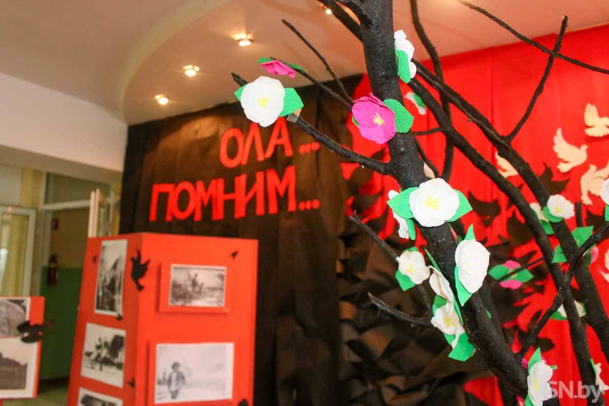 Каждый из них наверняка уже побывал на мемориальном комплексе, который строила вся страна, ведь история Олы – одно из самых массовых уничтожений мирного населения – зеркало судеб сотен белорусских сел, уничтоженных оккупантами в годы войны. А кто еще не был – с интересом смотрел видеоряд. И, конечно, минутой молчания школьники почтили память погибших.