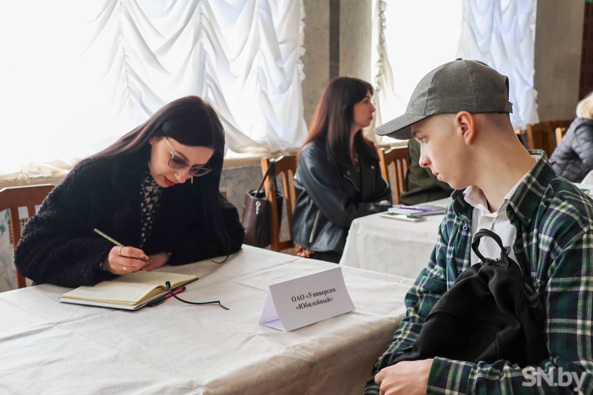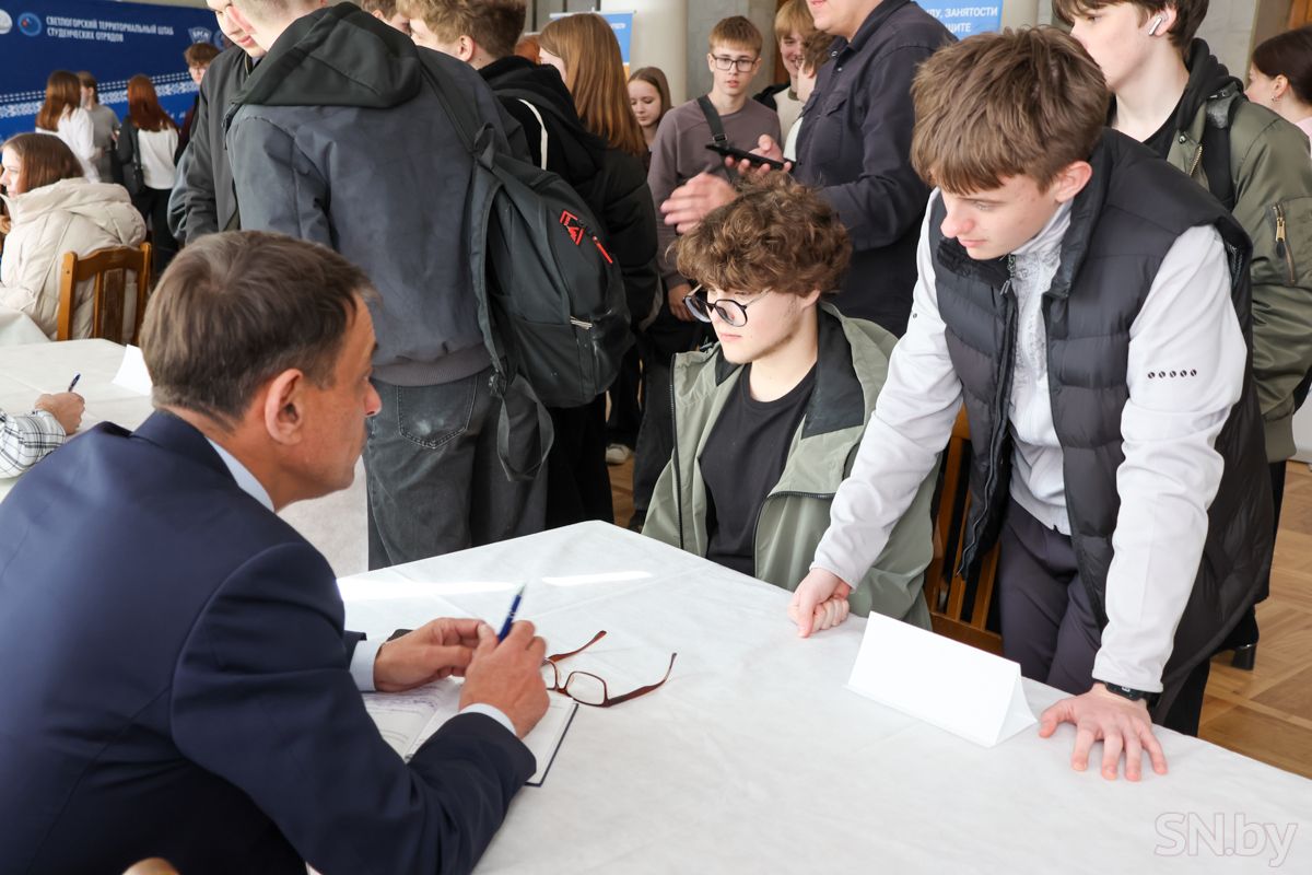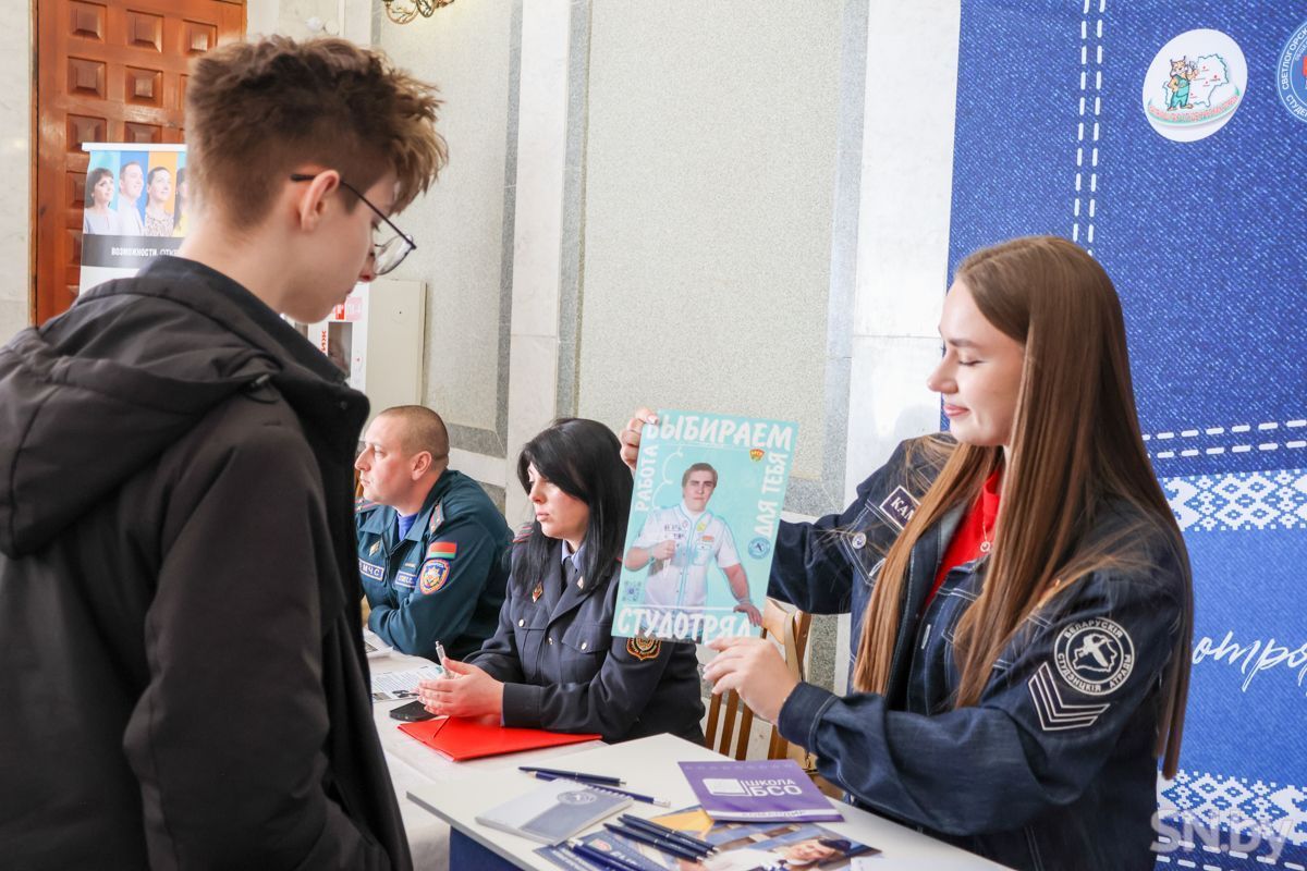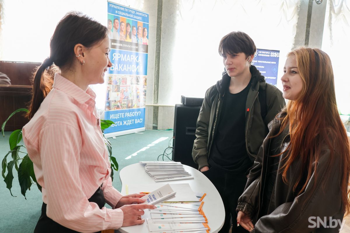 Трудоустроиться и заработать первые деньги юным светлогорцам предлагали представители кадровых служб ОАО «СветлогорскХимволокно», ОАО «Светлогорский ЦКК», Светлогорский филиал Гомельского облпотребобщества, Светлогорского лесхоза, Союза молодежи и многих других. Ребята времени зря не теряли: подходили к специалистам и интересовались буквально всем, начиная от вида предлагаемой занятости и условий работы до заработной платы. Отвечая на вопросы, начальник отдела кадров ОАО «СветлогорскХимволокно» Сергей Коваль рассказал, что их предприятие предлагает несовершеннолетним трудоустроиться уборщиками территорий. Заработную плату обещают хорошую. Также градообразующее предприятие готово обеспечить работой швей, укладчиков-упаковщиков, но только уже совершеннолетних.