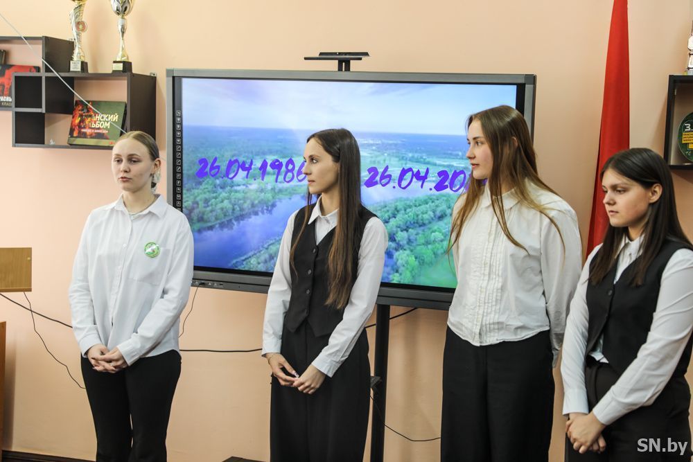 Совместно с учителями ребята посмотрели документальный фильм о чернобыльской аварии. Ребята узнали, сколько средств вложило государство в дезактивацию территорий и их дальнейшее развитие. После создания Полесского государственного радиационно-экологического заповедника, здесь было зарегистрировано более 1200 видов растений и 40 редких видов животных, которые развиваются без антропогенного воздействия. Правовой режим территории строго регулирует хозяйственную деятельность, минимизируя риски. Местные органы власти активно поддерживают социально-экономическое развитие. С 1990 года здесь реализовано шесть государственных программ, направленных на реабилитацию территорий, поддержку здоровья населения и развитие экономики. А сегодня действует государственная программа «Инфраструктура безопасности населения» на 2026-2030 годы.