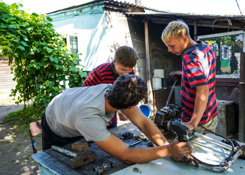«Все основные домашние дела им знакомы. Они могут сварить обед, сходить в магазин, убраться в доме и во дворе. Мальчики охотно помогают отцу в мастерской... Леонид их учит всему, что умеет сам», - говорит Елена Анатольевна. Она уже прикинула, что необходимо купить на врученные ей как хозяйке денежные сертификаты, а ковер, подаренный гостями, «будет лежать в комнате мальчиков, потому что пол там дощатый, а они на полу любят собирать пазлы, мозаики, возиться с игрушками, поэтому спасибо за такой нужный подарок».