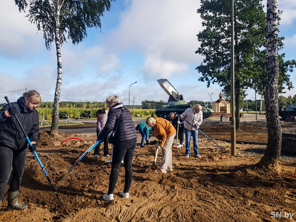 Важной частью композиции комплекса должны стать массивные газоны, которые свежей зеленью будут напоминать о созидательной мирной жизни, которую обрела наша страна в результате героизма и жертвенного подвига воинов Красной Армии. Почетную миссию по созданию газонов взяли на себя активисты районных общественных организаций «Белорусский союз женщин», «Белая Русь», «Белорусский фонд мира» и другие, а также трудовые коллективы учреждений и организаций, культуры, спорта и неравнодушные граждане - все, кто выразил желание стать причастным к созданию памятного места.