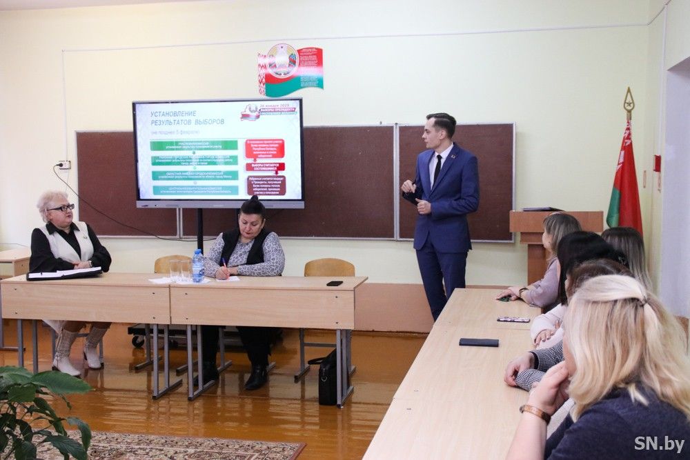 Главный специалист отдела идеологии и по делам молодежи Светлогорского райисполкома Георгий Невдах подробно ознакомил присутствующих с основными этапами избирательной кампании, установленными правилами и сроками их проведения. В продолжение темы председатель Светлогорского районного Совета депутатов Людмила Величко подчеркнула, что белорусская избирательная система прошла проверку временем: «За 30 лет независимого развития нам удалось построить надежный механизм взаимодействия гражданина и власти. Каждый человек путем голосования на выборах становится полноправным партнером государства в создании условий для стабильного и качественного развития общества»: