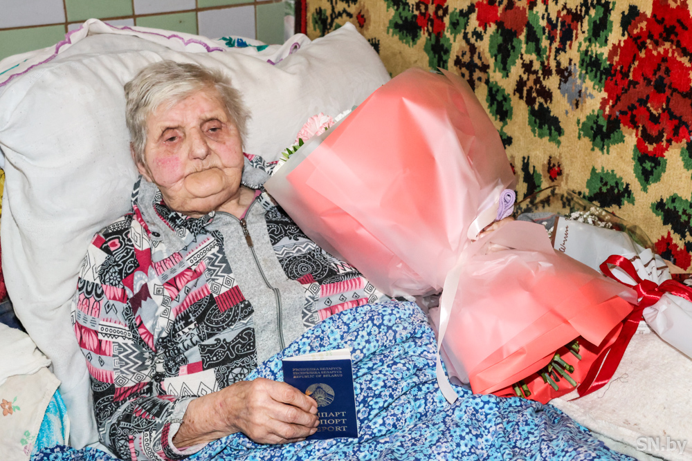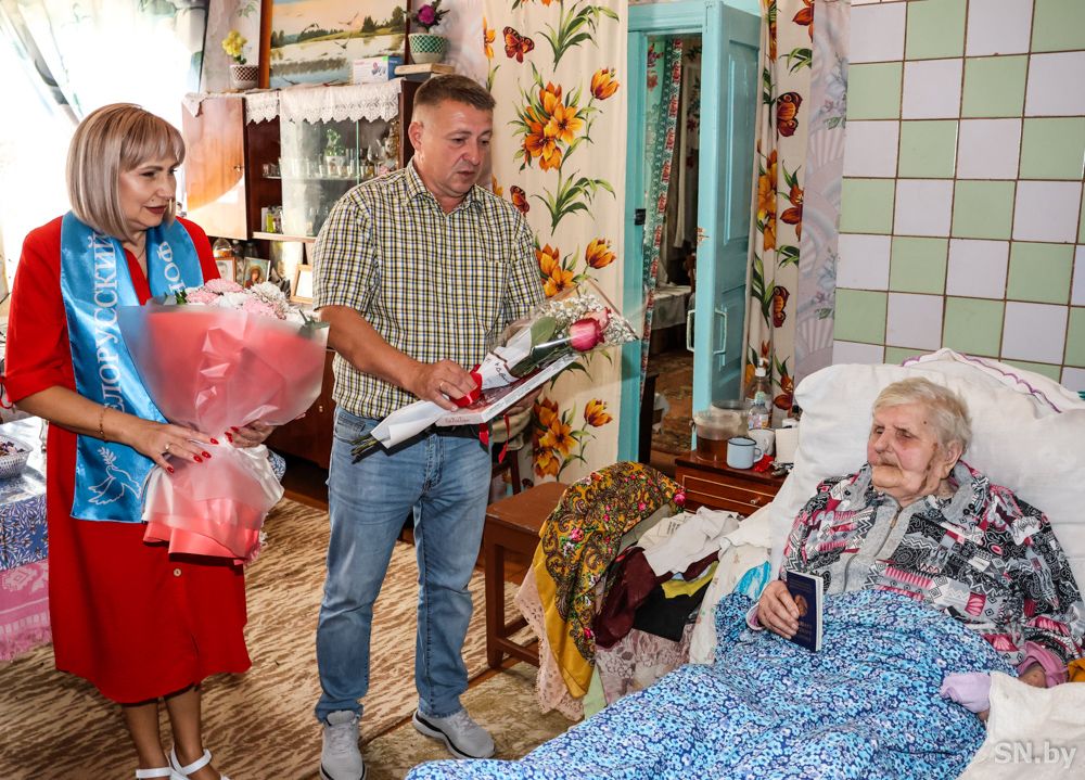 Желая человеку здоровья и долголетия, мы обычно говорим: «Дожить до 100 лет». Однако для многих людей это не предел. Екатерина Шафоренко, проживающая в д. Шупейки, преодолела 100-летний рубеж. Чтобы поздравить юбиляра и вручить новый паспорт, ее посетили Екатерина Шпак, и.о начальника отделения по гражданству и миграции Светлогорского РОВД, Игорь Комейко председатель Боровиковского сельского исполнительного комитета и Елена Шишкова, председатель Светлогорской районной организации ОО «Белорусский фонд мира», главный редактор районной газеты «Светлагорскiя навiны».