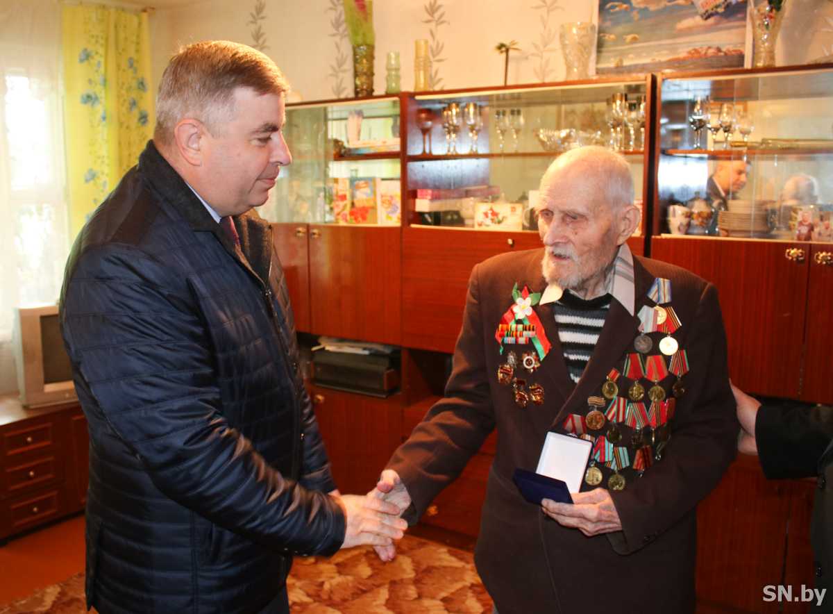 Председатель Светлогорского райисполкома Дмитрий Шабетник и депутат Палаты представителей Национального собрания Республики Беларусь Игорь Тавтын поздравили Бориса Маскевича и Валентину Мухину с наступающим 9 Мая, поблагодарили за большой личный вклад в Победу.
